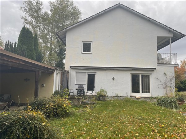 Altbestand zum Abriss: EFH-Villa aus den 50er-Jahren, sowie eine Garage, Pergola, Gartengeräteraum und Außenpool und ein stillgelegter Heizölerdtank in der Einfahrt