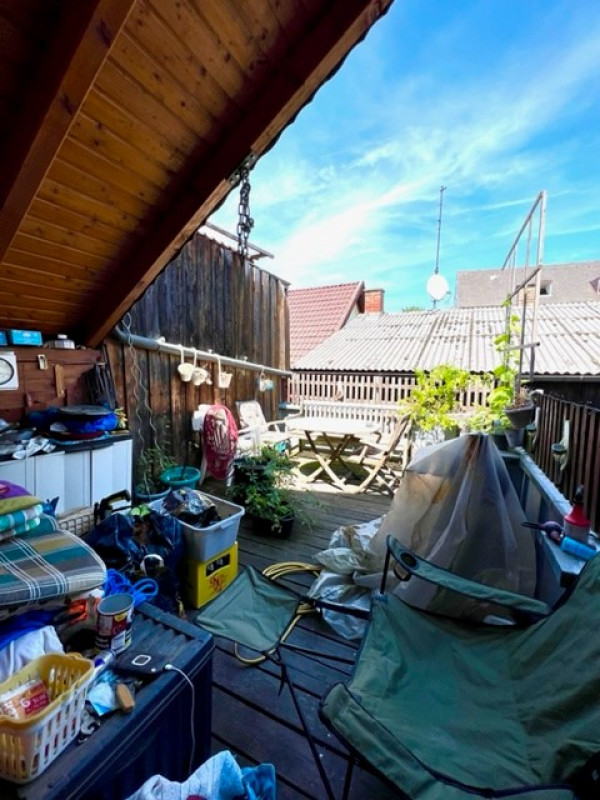 im Dachgeschoß (2. OG, ausgebautes DG) befindet sich eine Dachterrasse, ein Wohnraum und ein kleines Bad.