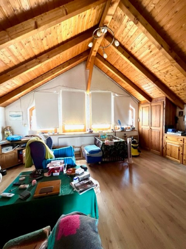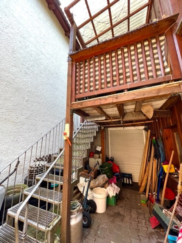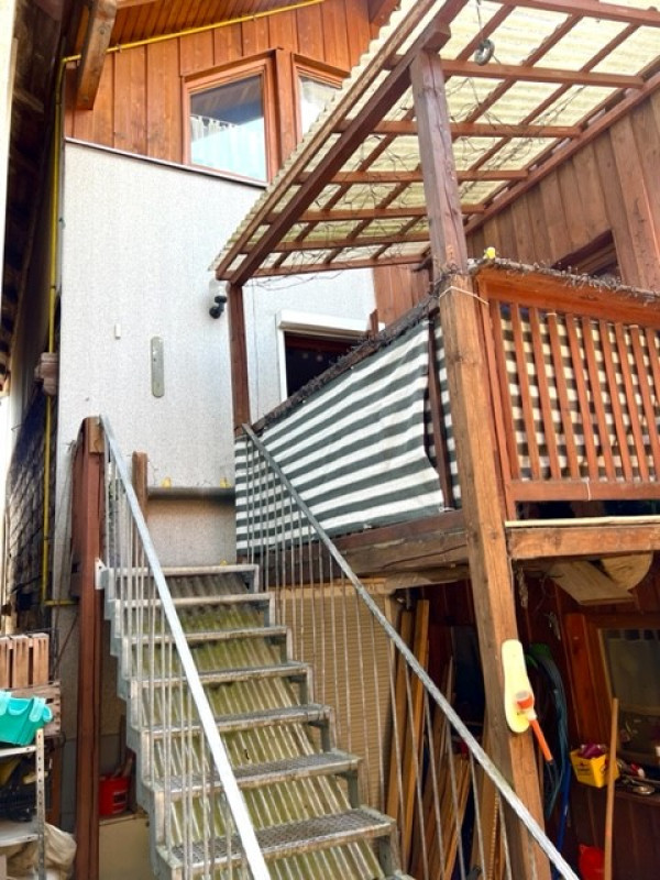 im 1. OG befinden sich eine Wohnküche, ein weiteres Schlafzimmer und ein Bad. Hier gibt es auch einen Eingang vom außen (Hof).