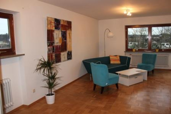 Ein zentraler Flur verbindet alle Räume miteinander. Das Schlafzimmer ist hell mit Fenster zum Balkon. Die Küche befindet sich links in der Wohnung und ist mit einem Fenster ausgestattet. Eine moderne Einbauküche mit Spülmaschine ist vorhanden. Die großen Fenster im Wohnbereich lassen viel Licht in die Wohnung, von hier hat man Ausblick auf die Stadt Vilshofen und Zugang zum überdachten Südbalkon. Das Wohnzimmer ist großzügig und bietet ausreichend Platz für den Wohn- und Eßbereich.